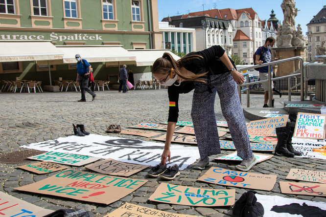 Štafetu za klima zahájilo hnutí v Brně. Uspořádalo dnes na Zelném trhu akci, na níž vystavili transparenty, které si studentky a studenti na stávky běžně přináší. Chybějící podporovatelé hnutí byli symbolicky vyjádřeni botami, které u transparentů studenti zanechali.