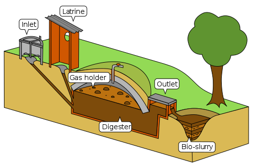 • Do uzavřené nádoby - digesťoru - se vkládají organické vstupy, jako je kravský či kozí hnůj, zbytky potravin, rostlinné zbytky nebo dokonce lidské výkaly.