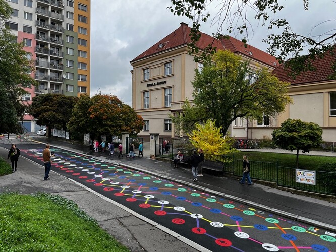 „Zájem o podobné projekty narůstá v různých městech napříč ČR. Asfalt art neslouží jen jako nástroj pro vytvoření příjemnějšího okolí škol. Lze jej použít kdekoliv je potřeba podpořit možnosti pobytu lidí ve veřejném prostoru a upozornit na zvýšenou potřebu opatrnosti ze strany projíždějících řidičů,“ říká Blanka Klimešová z organizace Pěšky městem.