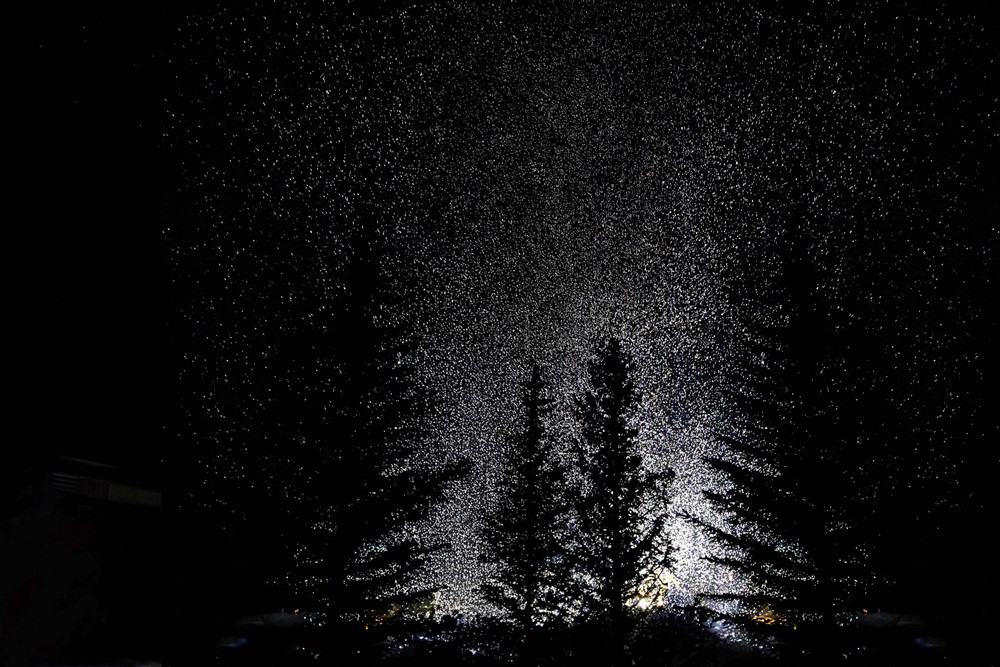 Co jsou ty jiskřičky zač? Jsou to bublinky ze sacharidových polymerů. Luminiscenční, světélkující. A též světlo částečně absorbující, emitující do okolí. Vypouštěné do vzduchu ze zásobníků, hnané k nebesům větrákem. Kde bez hluku a výbuchů, zápachu a oblaků dýmu zazáří. A pak? Jistě, po čase spadnou na zem. Jsou totiž lehoučké jako vločky. A protože jsou na biologické bázi, rozloží se, roztají. Ráno už na sněhu nebudou. Žádné odpady tedy v místě „aplikace“ nevznikají.