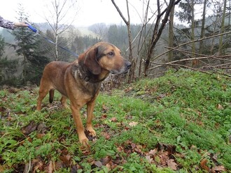 Když jsem k němu přišla, jen apaticky ležel, vše pozoroval a bručel. Bylo vidět, že se hrozně bojí. Opravdu moc, strachy se ani nehnul. Po dvou hodinách se ho podařilo odvést. Když jsem ho venku pohladila, strachy se počural. Prostě jen stál, nehýbal se a třásl se hrůzou, co se to s ním děje a neví, co má čekat. Chvilku jsme se venku prošli a pak jsme nasedli do auta a jeli k pěstounce. V autě bylo vidět, že se cítí jak Alenka v říši divů. Hezky seděl a koukal z okna ven. Když ho to přestalo bavit, přesunul tu svou krásnou psí hlavu mezi přední sedadla a položil mi ji na ramena. Když zjistil, že lidská ruka umí taky pohladit, moc se mu to líbilo a už neuhýbal. Naopak, byl moc rád a čumákem si říkal o přídavek.