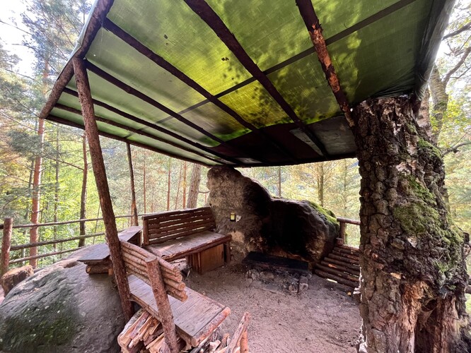 Jako brdský čundrák už jen emeritní, žasnu nad výtvory dnešní nové generace a je mi stydno, ano také jsme měli srub, ale dohodnutý s hajným, v místě kde nebyl vidět, jednoduchý přístřešek, mimo stromy, v údolíčku s potokem. Pod odchodu, nezbylo nic jiného než prázdná Chajda jedna pánvička a jedna konzerva pro zabloudivší. ohniště vyčištěné vajgly vysbírané a pohřbené, Záchod řádně zakopaný. Prostě to bylo automatické. Také s hajným nikdy nenyly problémy, bohužel aktivní příslušník VB z Dobříše, nechal srub vyhodit do vzduchu--- Umírněnost, dohoda a osvěta a lidi se vejsou všude, ale když vidím tohle nechápu proč tam nemůžu létat s 250 g drone, který po sobě nic nezanechá-----