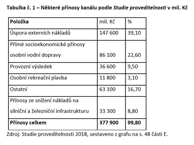 Vykázaná obří úspora externích nákladů 147,6 mld. Kč je přitom vymyšlená. Skutečnost bude vysoce záporná. Jednak se bude po kanálu málo co vozit, jednak ve srovnání s elektrickou železnicí nejde o snížení externích nákladů, ale o jejich zvýšení. Přitom se nekalkulují obří ekonomické škody na životním prostředí, které případná výstavba kanálu vyvolá.
