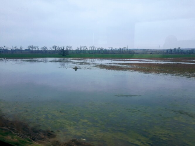 Uvedené koleje moc ne. Hluboké bahno v kolejích někde na poli spíš ukazuje, že až přestane deštivé počasí, voda se za pár dnů zasákne do půdy a pokud tam nakladla vajíčka nějaká ropucha nebo kuňka, pulci uhynou na suchu.