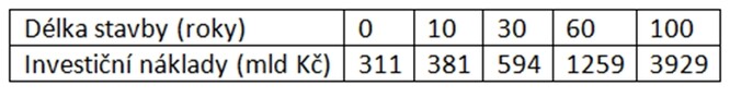 Doba výstavby cca 300 km dlouhého kanálu za 10 let je pro srandu králikům. Němci stavěli 170 km dlouhý kanál s podobným profilem 32 let. Podobným tempem bychom to tedy stavěli třeba 60 let a pappenheimským tempem klidně sto let. Náklady letí nahoru, a to ještě nezdražujeme tzv. náklady „přes noc“ (první údaj za 311 mld Kč je součet faktur). V tabulce jsou uvedeny investiční náklady včetně úroků (4 %) z kapitálu umrtveného po dobu výstavby počítané k roku uvedení do provozu. Tabulka nezahrnuje předpokladatelné zdražování jako takové.
