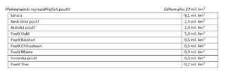 V Súdánu postoupila poušť během sedmnácti let o sto kilometrů. Sahara je největší pouští na světě a dosahuje velikosti Spojených států amerických, to je 9,6 milionů km2. Sahara se od roku 1980 rozšířila o 233 kilometrů na jih a o 106 kilometrů na sever.