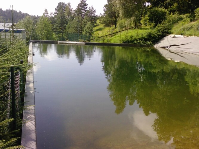 rozmnožování obojživelníků a pozvolné betonové břehy jim umožňují nádrž