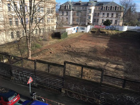Pozemek vedle základní školy byl několik let opuštěný. Původně tady stála škola, která byla za 2. světové války vybombardovaná, pak tu byl volejbalový klub, který z neznámého důvodu zanikl, a od té doby, cca 5 let, byl pozemek prázdný.
