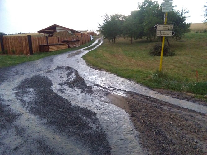 ale nic a pak teče voda i po té cestě bez kdysi běžných příkopů.