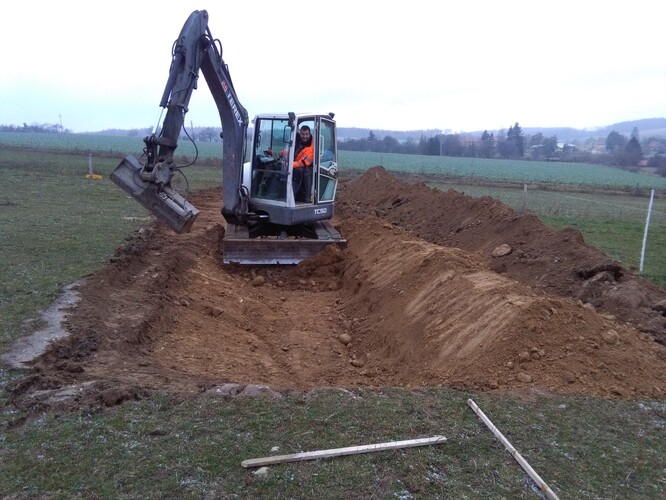Svejl ve svažité části pozemku a v místě s menším sklonem v místě přirozené mělké prohlubně.