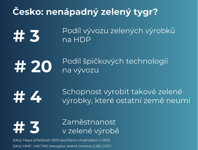 Globální ekonomika přijala klimatickou krizi jako fakt a příležitost, a proto bude v příštích desetiletích velmi hladová po úsporných a čistých technologiích. Jde o šanci pro "zlaté české ručičky". Místo extravačních projektů můžeme využít naší stávající průmyslové a distribuční infrastruktury, vysokých čistých exportů, technicky zdatné a cenově konkurenceschopné pracovní síly.