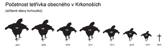 Zvířecím symbolem Krkonoš není ani jelen, ani vlk, ale tetřívek obecný. I když je velký asi jako slepice, moc lidí ho nevidělo. Je velmi plachý a lidí se bojí. A ještě k tomu ho je málo. V celé České republice živoří jen 800 až 1 000 kohoutků, slepiček je asi stejně. V Krkonoších bylo v roce 2001 asi 135 kohoutků, ale v roce 2017 už jen 74! Vymírají. Pokud něco neuděláme, tak do roku 2040 zahyne poslední.