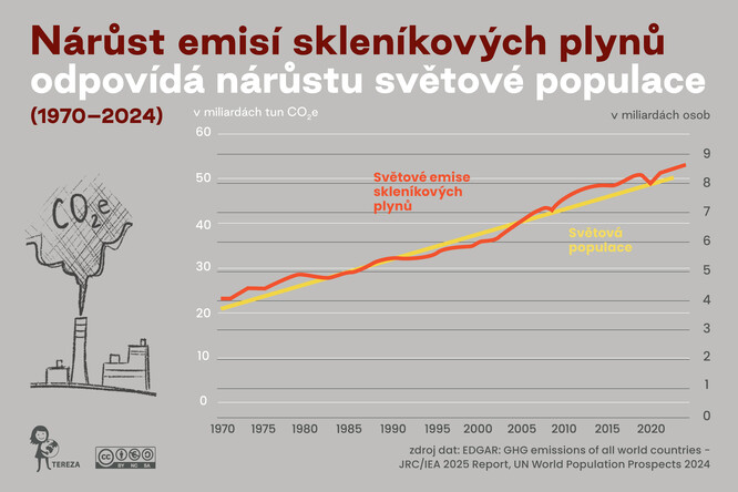 Trend růstu populace: Emisí přibývá, jak přibývá i lidí. Při pohledu na grafy tato souvislost zatím vypadá dost jednoznačná. I při pohledu na světové emise per capita je patrné, že od roku 1979 bohužel zatím moc neklesly. Dobrou zprávou je, že růst populace zpomaluje a ta začne celkově klesat ještě v tomto století.Trend urbanizace a růstu životní úrovně: V mnoha rozvojových zemích světa jsou teprve v určité fázi výstavby měst, infrastruktury, zajištění elektřiny pro každého atd. To přináší mnohem větší emisní nároky než v zemích, kde už tato infrastruktura existuje.