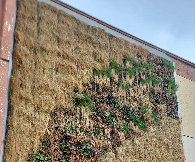 Při detailním pohledu na fotky je vidět, že stěna byla montována ještě mladá a některé rostliny nebyly dostatečně rozrostlé, ale to je realita všech projektů, kde se spěchá (takže všech).