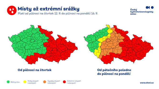 ČHMÚ bude pravidelně aktualizovat predikci a informovat veřejnost o aktuálním stavu. „Výstraha platí pro část území již od dnešní půlnoci, od pátečního odpoledne je výstraha rozšířená na téměř celé území ČR, s výjimkou Karlovarského a části Ústeckého kraje. Pravděpodobně půjde o největší povodňovou situaci od roku 2013, kdy naše území rovněž zasáhly extrémní srážky,“ říká ředitel Českého hydrometeorologického ústavu Mark Rieder s tím, že tlaková níže bude postupovat z centrálního Středomoří nad střední Evropu, kde se bude udržovat nejdříve téměř bez pohybu, až během neděle a počátkem příštího týdne se začne zvolna odsouvat k východu. Vydatné srážky budou zesilovat na severním a severozápadním návětří hor z důvodu silného větru, který by měl v ČR foukat od pátku až do neděle.
