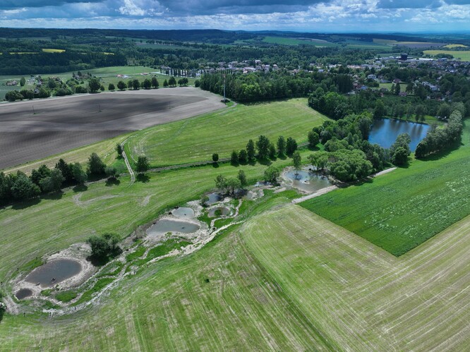 V březnu roku 2025 se podařilo realizovat první významný krajinný prvek v lokalitě nad koupalištěm Klínot v režii odborné firmy ADAPTO.space. Na řešené lokalitě vznikl komplexní systém tůní a mokřadů, který má za cíl zadržet srážkovou vodu v území, snížit odtok povrchové vody a tím i riziko eroze a povodní. Očekává se také pozitivní dopad na biodiverzitu lokality, neboť nově vzniklé biotopy poskytnou útočiště pro řadu rostlinných a živočišných druhů. Cílové funkci záměru pomůže jistě i změna hospodaření na přilehlých pozemcích, kde se chystá Jan Záhora uplatňovat regenerativní pastvu dobytka.