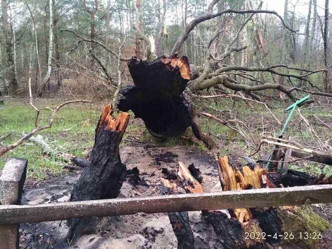 Další smutnou skutečností války byla ztráta známé přírodní krásy rezervace – 500 let starého dubu. Výška stromu dosahovala více než 25 metrů. Dub byl zničen během náletu. O této přírodní památce věděli všichni místní obyvatelé i turisté, kteří strom navštívili. Staletý dub byl považován za vizitku rezervace.