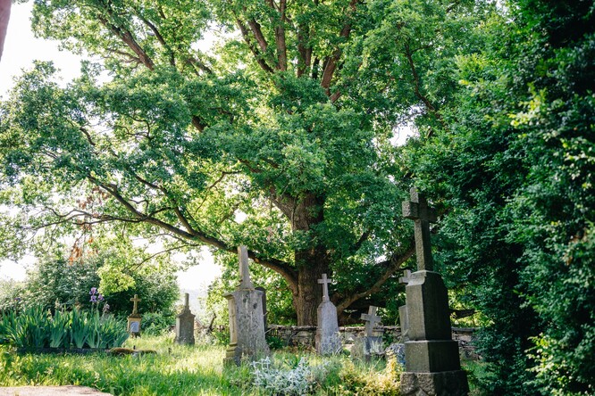 U barokního kostela ve Skviříně dělá společnost místním Kostelní dub, který pamatuje třicetiletou válku, obnovenou víru, proměny krajiny i lidských osudů.