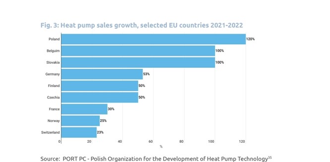 Zavádění tepelných čerpadel v Evropě se v roce 2022 dramaticky zvýšilo: v Polsku vzrostl jejich prodej o 120 %, na Slovensku a v Belgii o 100 % a ve Finsku, České republice a Německu o 50 % a více, píše Zero Carbon Analytics. Zajímavý je také současný trend zvyšování výroby energie z obnovitelných zdrojů: Evropa uvažuje o možných lokalitách v Africe.