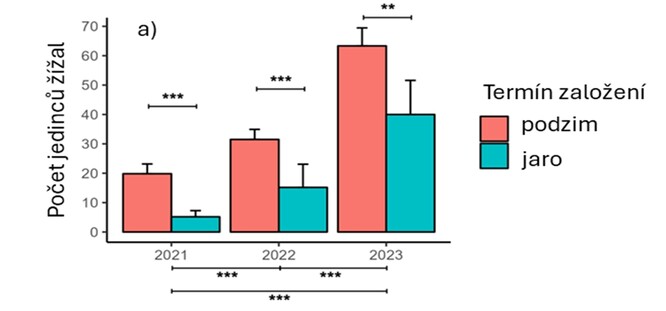 Vědci také zkoumali, jak se liší biodiverzita v biopásu vysetém na podzim a vysetém na jaře. A podle početnosti žížal došli k závěru, že z pohledu biodiverzity může být výhodnější zakládat biopásy už na podzim.