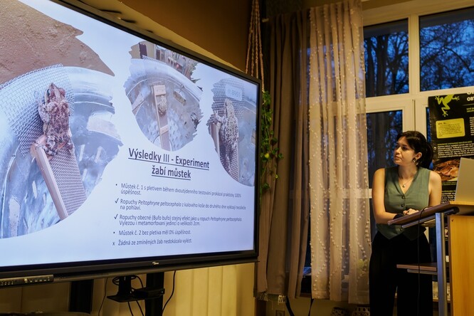 Barbora Rolečková, kurátorka z Národní genetické banky živočichů představila svou práci a vyzvala ke spolupráci při sběru dat. Uvedla, že vzorků z kadaverů obojživelníků i plazů je nedostatek, přičemž ty by mohly posloužit dál při studiu populací. Herpetolog Lumír Gvoždík mluvil (Ústav biologie obratlovců) o vlivu vysychání tůní, a tedy o vlivu měnící se teploty a konkurence, na vývoj larev čolků. Anna Vedralová účastníky seznámila se svým projektem záchrany žab na pražském Petříně, kde se jí díky důkladnému mapování a vývoji unikátního modelu tzv. žabích můstků podařilo zajistit, aby se žáby uvíznuté v kanálech dostaly bezpečně ven.