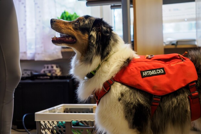 Lucie Kleprlíková s fenkou australského ovčáka Artemis, která má specializaci na vyhledávání čolků, prakticky ukázaly vyhledávání obojživelníků, když fenka správně označila nádoby s pachem čolka a ropuchy mezi prázdnými nádobami.