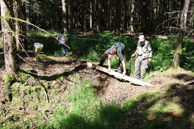 V rámci projektu LIFE Adapt Brdy vznikne celá síť drobných hrázek a vodních prvků, které mají pomoci krajině zadržet vodu a obnovit přirozený koloběh. Většinu práce odvedou stroje, ale právě tato červnová akce měla symbolicky připomenout, jak důležitá je voda v krajině.