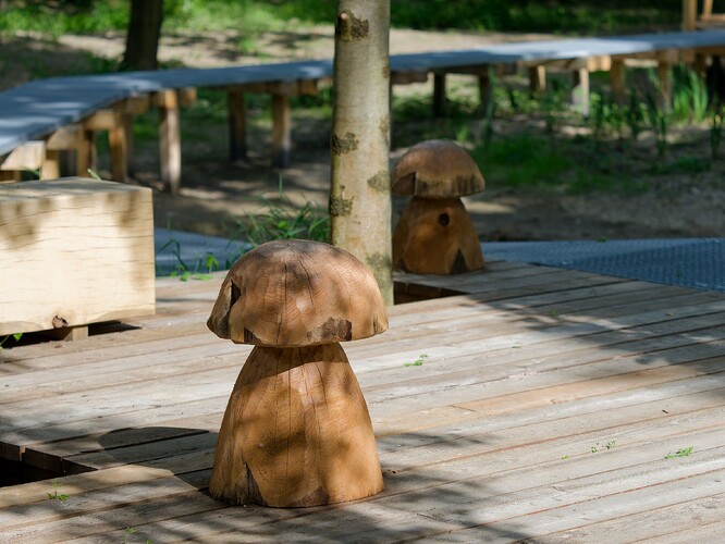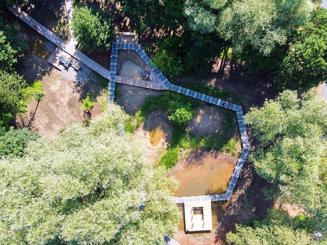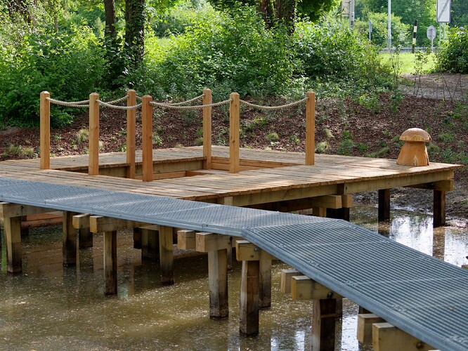 Pro pohyb v mokřadech byly udělány i pěšiny a povalové chodníky, které k relaxaci doplnila dřevěná mola, lávky a vhodný mobiliář z přírodních materiálů – sedací prvky, lavičky a celé spektrum herních prvků.