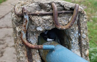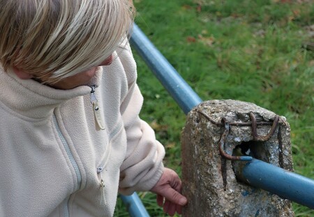 Na řadu tedy musel přijít majzlík a kladivo. Lehce jsem oťukal zvětralý beton, přihnul ocelový drát a opatrně pohnul s rourou zábradlí. Sýkoru jsem pak vytáhl celou pocuchanou a naštvanou z díry ven.