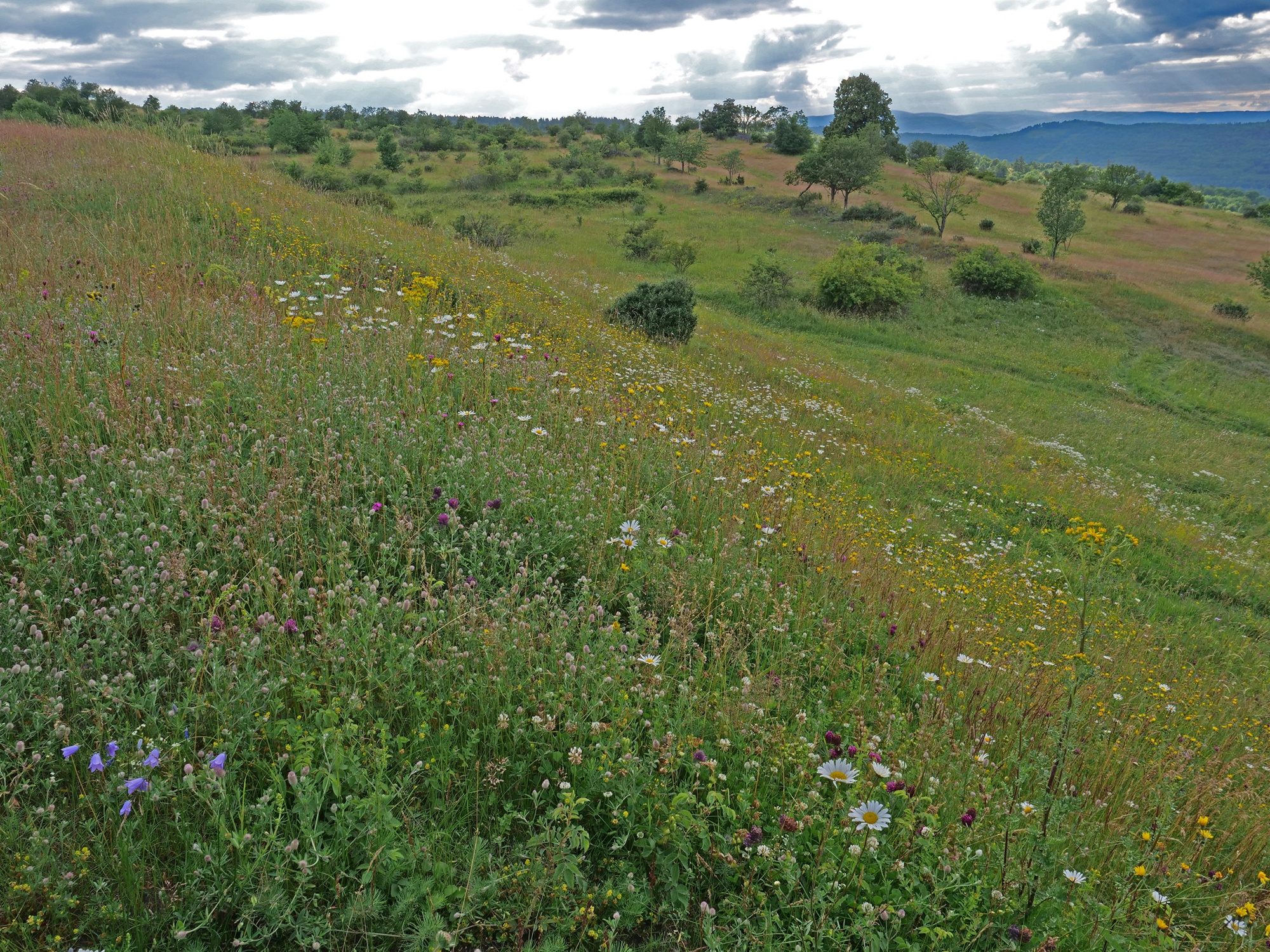 V Doupovských horách se zachovala pestrá mozaika kvetoucích luk s mnoha vzácnými druhy květin, včetně orchidejí, motýlů a ptáků se střídá s mokřady a starými sady. Pastva zubrů a divokých koní právě v takové krajině pomůže udržet její otevřený a pestrý charakter.