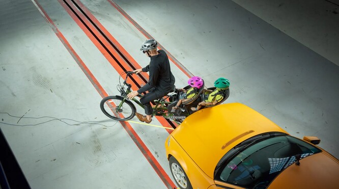 U kola typu Long John (jednostopé nákladní kolo s korbou) se vytrhl z ukotvení zádržný systém dětí a figuríny po nárazu vypadly z přepravního boxu. Jasné doporučení ADACu proto zní, aby výrobci zapracovali na zdokonalení zádržného systému.