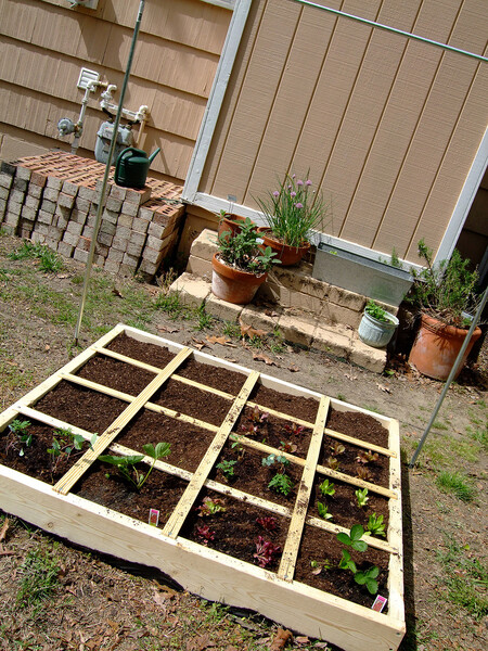 Tento čtvercový záhon se následně rozdělí na 16 malých čtverečků. (Každý z nich má rozměr 30x30 cm, což je jedna stopa čtvereční, odtud je odvozený i původní anglický název celého způsobu zahradničení: Square Foot Gardening.) Do takto připravených miniaturních políček se sází například po jednom květáku nebo brokolici, čtyřech hlávkách salátu, devíti trsech špenátu nebo se vyseje 16 mrkví či 16 ředkviček.