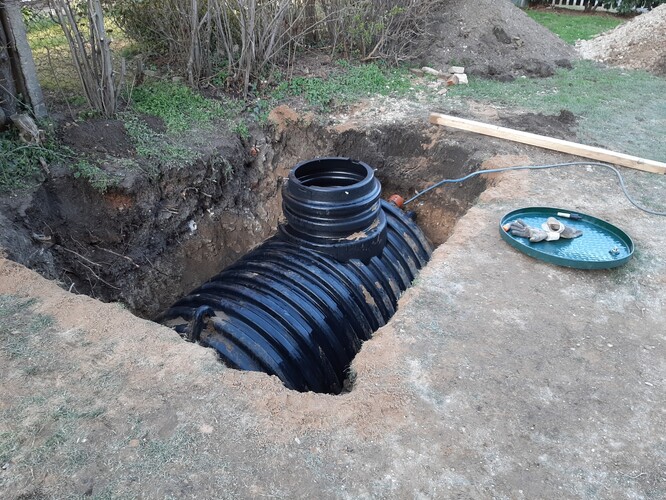 Nad nádrží, usazené na vrstvě štěrku, by mělo být 20-30 centimetrů k úrovni terénu. Trochu to souvisí se specifikací konkrétních jímek a jejich potrubí a situací v místě instalace. Samotné osazení a zahrabání je třeba realizovat v jeden den.