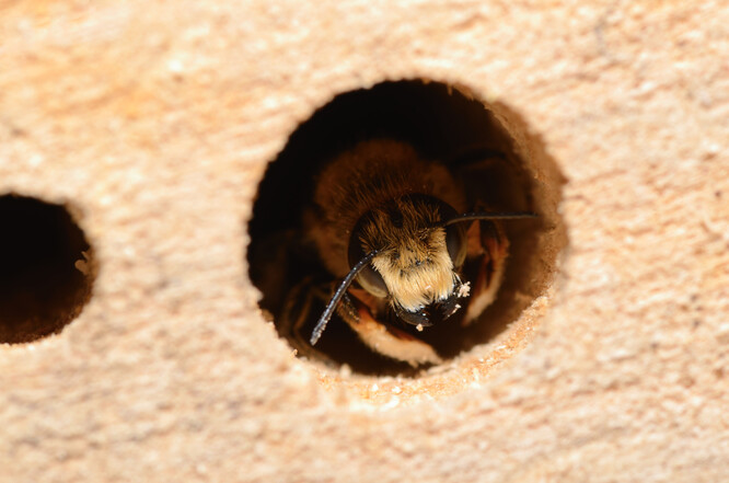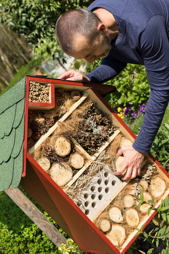 Zázemí pro včely samotářky však mohou na vhodném místě uměle připravit i lidé. Stačí k tomu, když například vyvrtají díry do dřeva, zastřeší jej a takto upravené hnízdo umístí poblíž kvetoucí louky, říká Jiří Řehounek, který se v českobudějovické organizaci Calla věnuje ochraně hmyzu. Takzvané „hmyzí hotely" totiž nejsou nic jiného než zastřešené různě velké „domečky“ s velkým množstvím otvorů, např. dutých stonků rostlin nebo dírek vyvrtaných do dřeva.
