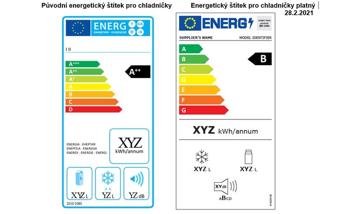 Nově štítek obsahuje jednotnou škálu energetických tříd od A do G pro všechny typy a modely v daných skupinách výrobků. Zmizí tedy označení s jedním až třemi „+“ přidávané k třídě A.