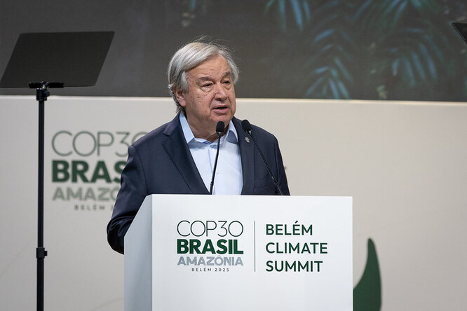 Guterres vyzval delegace na COP30 k "ambiciózním kompromisům" a udržení nárůstu teplot do 1,5 stupně