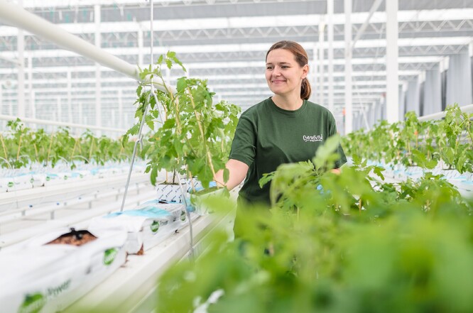 Pěstební skleník na rajčata využívající hydroponii v Dolní Lutyni v Moravskosklezském kraji.
