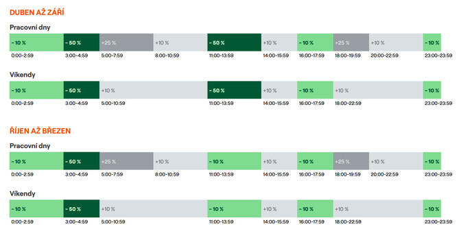 Pásma odrážejí ceny na velkoobchodním trhu nejen během dne, ale i v průběhu roku: během jara a léta vyrábějí přes den například solární elektrárny a cena elektřiny jde dolů. Pokud tedy například zákazník zapne myčku teď v říjnu v 11 hodin dopoledne, zaplatí proti svému tarifu o 10 % méně. Od dubna do září ale ve stejný čas zaplatí za provoz myčky jen polovinu obvyklé ceny.