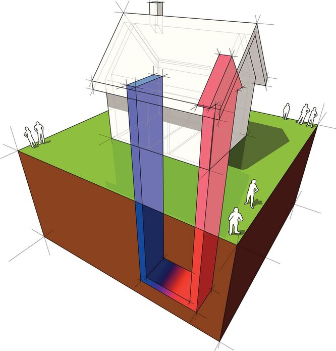 Pro tzv. geotermální čerpadla musíte mít dostatečný prostor pro vrtnou soustavu a sběrnou šachtu. Nezabírá hodně místa na povrchu, ale vrt se provádí do hloubky až 200m! Na 1 kW výkonu tepelného čerpadla potřebujeme cca 12 m vrtu.
