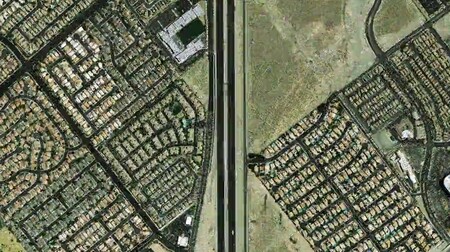 Arena. Krátký film složený ze satelitních snímků silnic, budov a dalších lidských zásahů v krajině Video