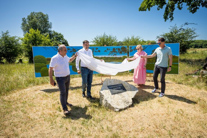 Po poledni Hladík odhalil pamětní desku s prostým názvem CHKO Soutok a datem jejího vzniku umístěnou na hranici vznikající oblasti u zámečku Lány nedaleko Lanžhota.