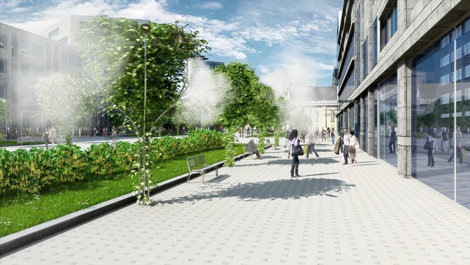 Vzrostlé stromy kromě estetické stránky zlepšují mikroklima ve městech. Často však pod povrchem naráží na inženýrské sítě. "Cílem není nahrazovat živé stromy, ale umisťovat zeleň i tam, kde to z dispozičních důvodů není možné. Pokud má koruna vyrůst do několika metrů, aby tvořila stín, musí k tomu mít adekvátní prostor i pod zemí, což často nelze. V lednu nás napadla tahle koncepce, jelikož popínavé rostliny vyžadují daleko menší zemní lože a nejsou tak náročné jako stromy," popsal Prax.