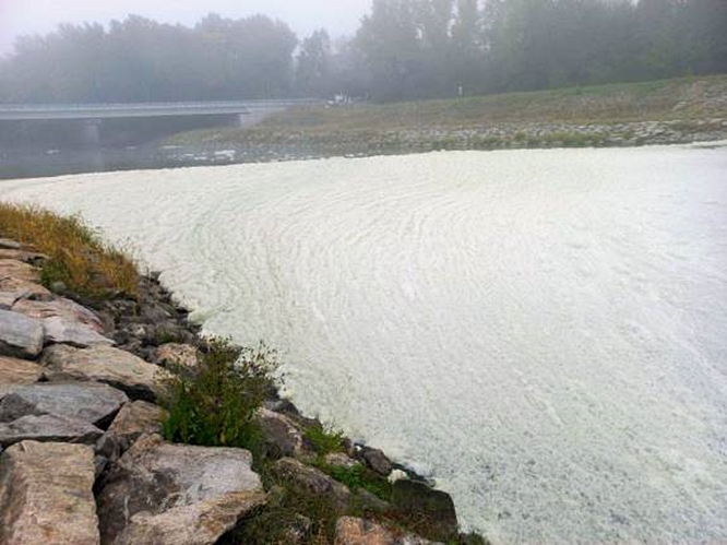 Dyji u novomlýnské nádrže pokryla pěna z biomasy, situaci vodohospodáři sledují