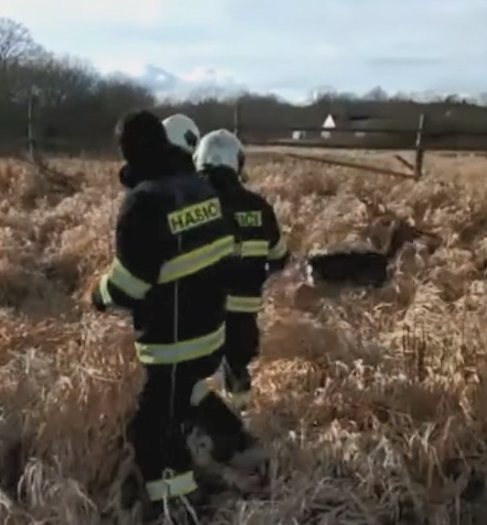 Hasiči v Budějovicích zachránili jelena, zasekl se s parohy Video