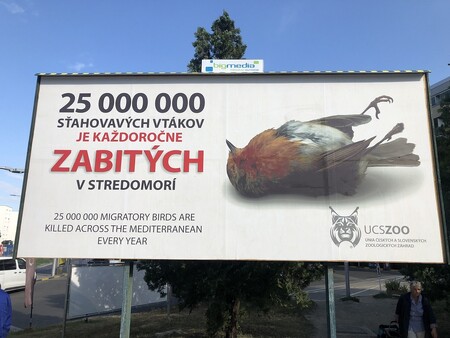 Pět billboardů upozorňujících na masakry tažných ptáků ve Středomoří je umístěno v Bratislavě: na Ivanské cestě, u výjezdu z letiště, na Bajkalské a Vanorské ulici a na Trnavském mýtě.