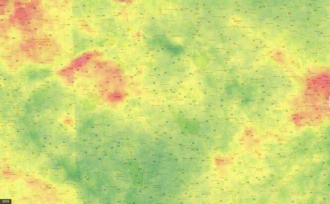U České republiky je podle něj ale situace složitější, protože jde o výrazně menší území. Pokles koncentrace oxidu dusičitého je na družicových snímcích sice znatelný i na českém území, data z měřicích stanic jsou ale podle Brzeziny nejednoznačná. Některé stanice sice zaznamenaly pokles koncentrace, jiné ale evidují naopak nárůst. Dopravní stanice však podle něj nemají příliš velkou reprezentativnost a koncentrace tam naměřené nelze vztahovat na rozsáhlejší území. Družicové snímky zase poskytují méně přesné informace v nižším rozlišení, za to plošnějšího charakteru.