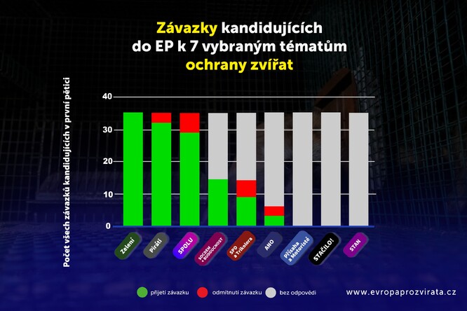 Nejvíce závazků k podpoře ukončení klecových chovů a dalších důležitých kroků ke zlepšení kvality života zvířat v Evropě deklarovali Zelení a Piráti. Naopak Přísaha a Motoristé, Stačilo! a STAN se k žádné podpoře nepřihlásili, přestože je k tomu vyzývaly stovky lidí.