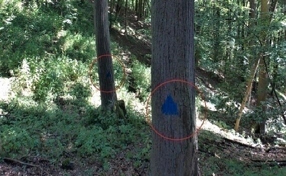 Modrým trojúhelníkem jsou podle České společnosti ornitologické značeny odumřelé stromy, doupné stromy a hnízdiště vzácných druhů. Označený strom se nekácí, dokud úplně nezetlí. "Pokud není na konkrétním místě domluveno jinak, může být podle smlouvy podepsané s Lesy ČR označeno maximálně pět stromů na hektar lesa," uvedla ČSO na svém webu.