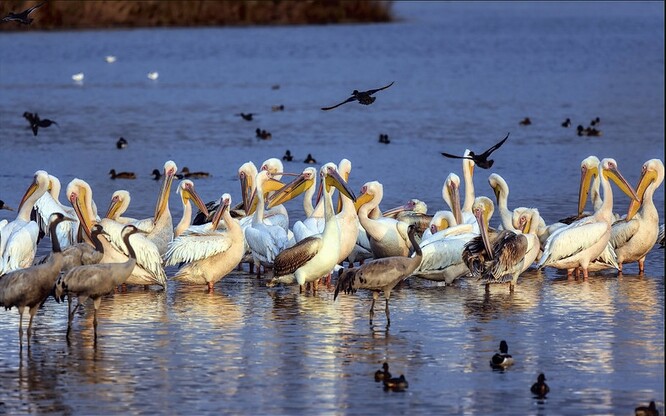 Podle odhadů je mezi nimi 45 000 hladových pelikánů, kteří patří k těm největším druhům a jimž chutnají ryby z chovů. To ale stojí rybářství mnoho peněz a pro pelikány to může skončit špatně.