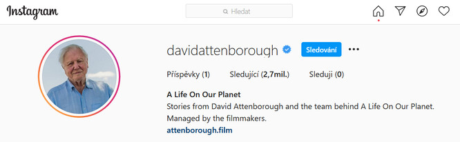 Přírodovědec Attenborough po dvou měsících opustil instagram